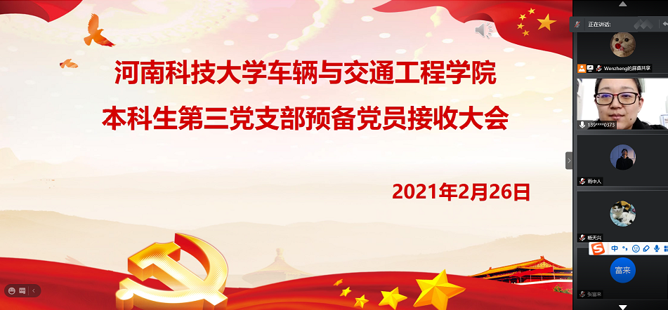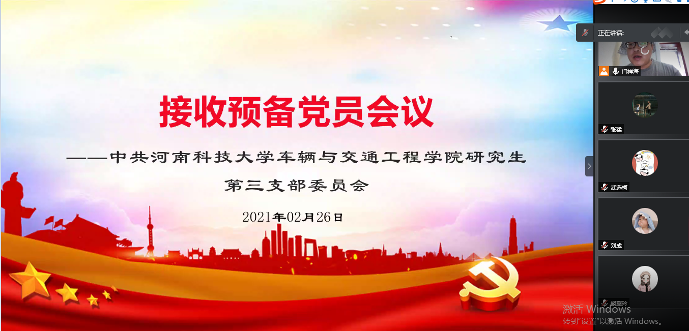 2021年2月26日上午10时,73882必赢网页版研究生三个党支部和本科生第三党支部分别在线上召开党员大会,接收34名预备党员。会议分别由四个学生党支部书记主持。