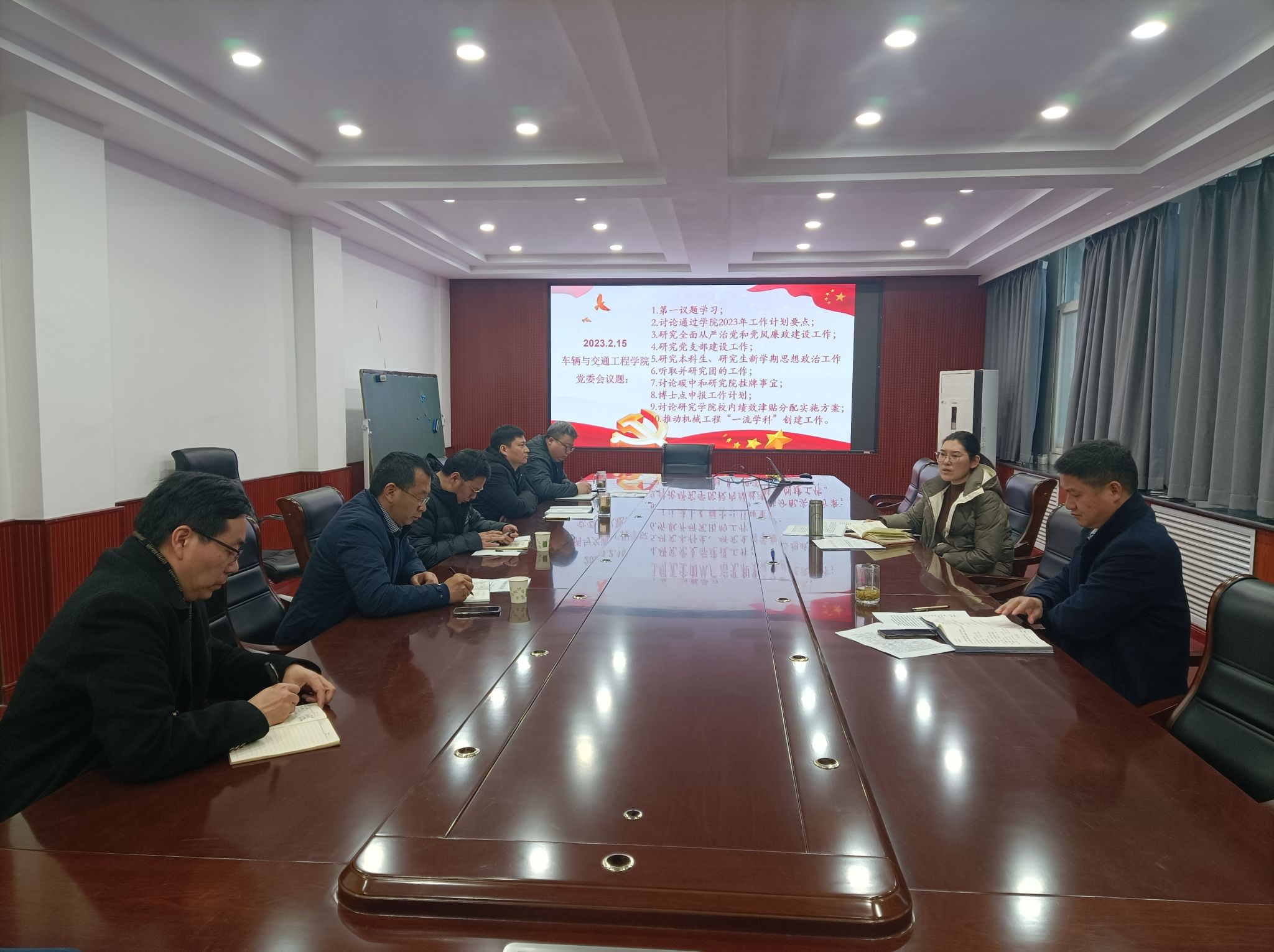 会上,大家首先以“第一议题”形式集体学习了党的二十大报告全文、党章和习近平总书记在党的二十届一中全会上的重要讲话精神,并结合分管工作进行了交流研讨。接着,与会人员结合《73882必赢网页版2023年工作要点》要求,讨论通过了学院2023年工作计划要点,并对新学期全面从严治党和党风廉政建设、学科提升、师生思想政治教育、党团组织建设等重点工作进行了专题研究。