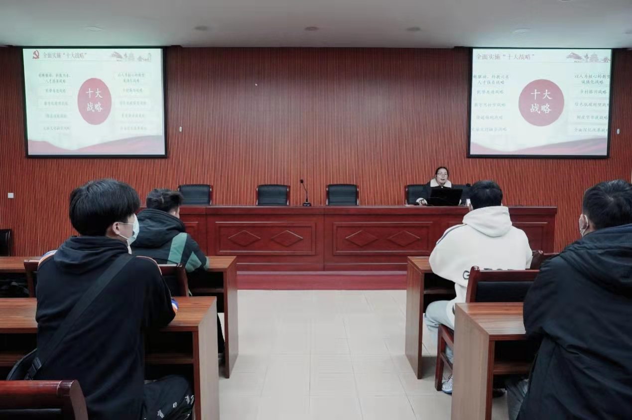 李艳红为大家详细解读了楼阳生书记《高举伟大旗帜牢记领袖嘱托为确保高质量建设现代化河南确保高水平实现现代化河南而努力奋斗》的报告。她指出楼阳生同志的报告聚焦创新主线,前瞻性提出了河南未来发展的“十大战略”,为建设现代化河南擘画了宏伟蓝图。作为学院团学骨干,要学思悟并举,全面把握大会的重大意义,牢记使命,坚定自己的理想信念,对自己的大学进行规划,努力学习科学文化知识,将自己的目标与建设美丽河南结合起来,为河南的发展贡献自己的力量,在现代化建设中彰显青年担当。