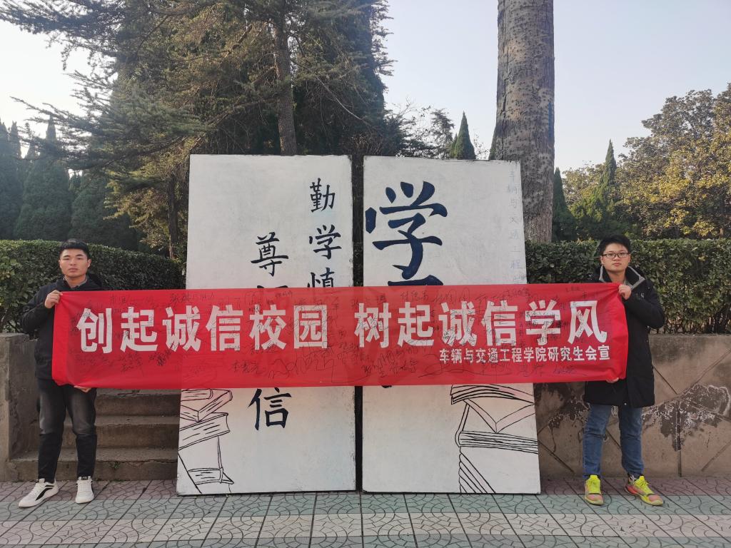 73882必赢网页版研究生举办“讲诚信,正学风”条幅签名活动