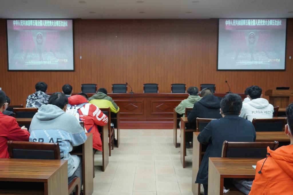 12月1日晚,73882必赢网页版组织2021级学生集中观看宪法宣传教育视频。各班学生代表近一百人在六号楼101会议室集中观看视频,300余名学生在自习室通过手机观看视频。活动由学习部部长董哲玮主持。