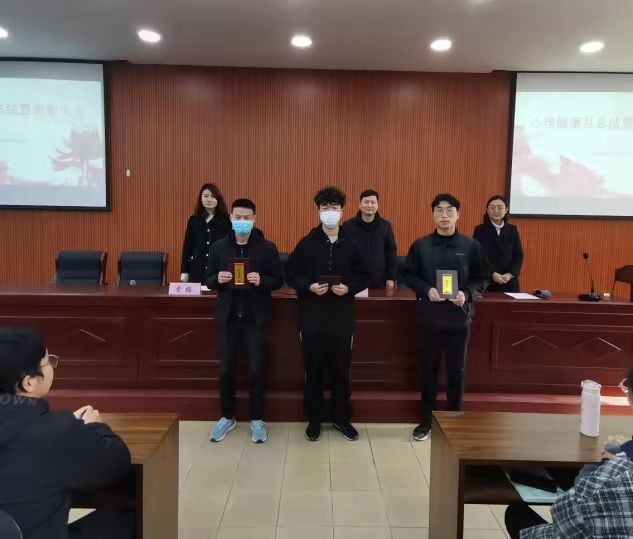学院领导分别向荣获心理健康教育宣传月优秀组织奖的车辆212班、能动212班和荣获心理健康教育宣传月先进个人称号的车辆204胡时恺、能动205张新轩、车卓211潘振轩颁奖。