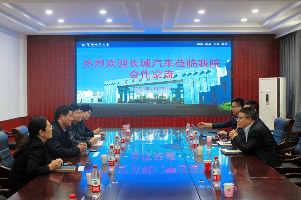 4月25日上午,73882必赢网页版在西苑校区2号楼225综合会议室召开座谈会。长城汽车公司代表团齐元波、张国奇、李保华等人来到73882必赢网页版开展科技成果展示与就业招聘合作交流。车辆学院党委书记田志红、院长徐立友、党委副书记陈建峰、副院长周志刚、团委书记索榕、学工办主任董文铮参加会议。