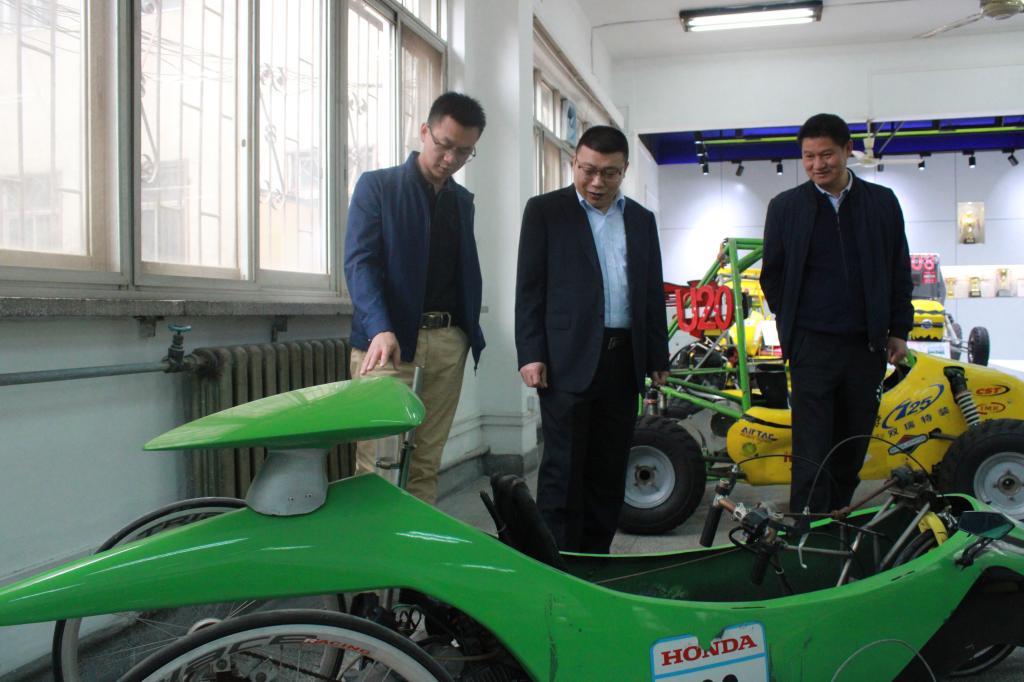 座谈会结束后,齐元波一行来到车辆学院河洛风赛车队的工作场地,参观了车队取得的科技成果。并对学院赛车项目表示认可和赞赏。
