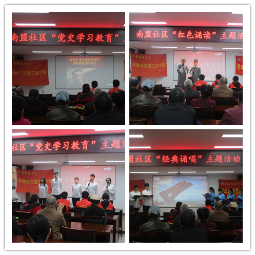 接着,同学们开展了观看党史百年视频、“五四那些故事”相声表演、《我和我的祖国》歌曲演唱、《绝不动摇》诗歌朗诵等形式多样的纪念活动,和南盟社区党员群众一起抒发爱国情怀,传承炽热的五四精神。