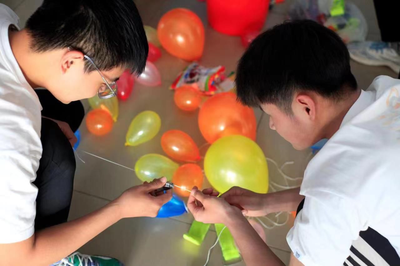 活动中,裁判一声令下,同学们迅速分成两两一组,将气球绑在腿上后,便迅速寻找进攻目标,并采取行动。随后,气球的爆裂声伴随着同学们的惊呼声和嬉闹声传遍体育馆,同学们的脸上都洋溢着青春的笑容。最后,场上还留有气球的一队获得冠军。