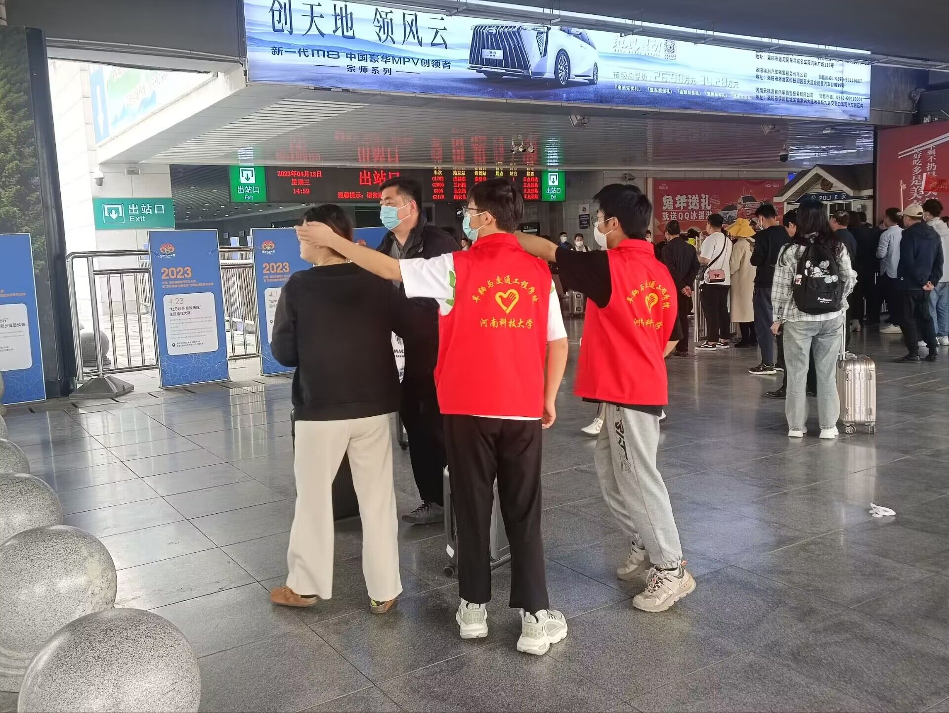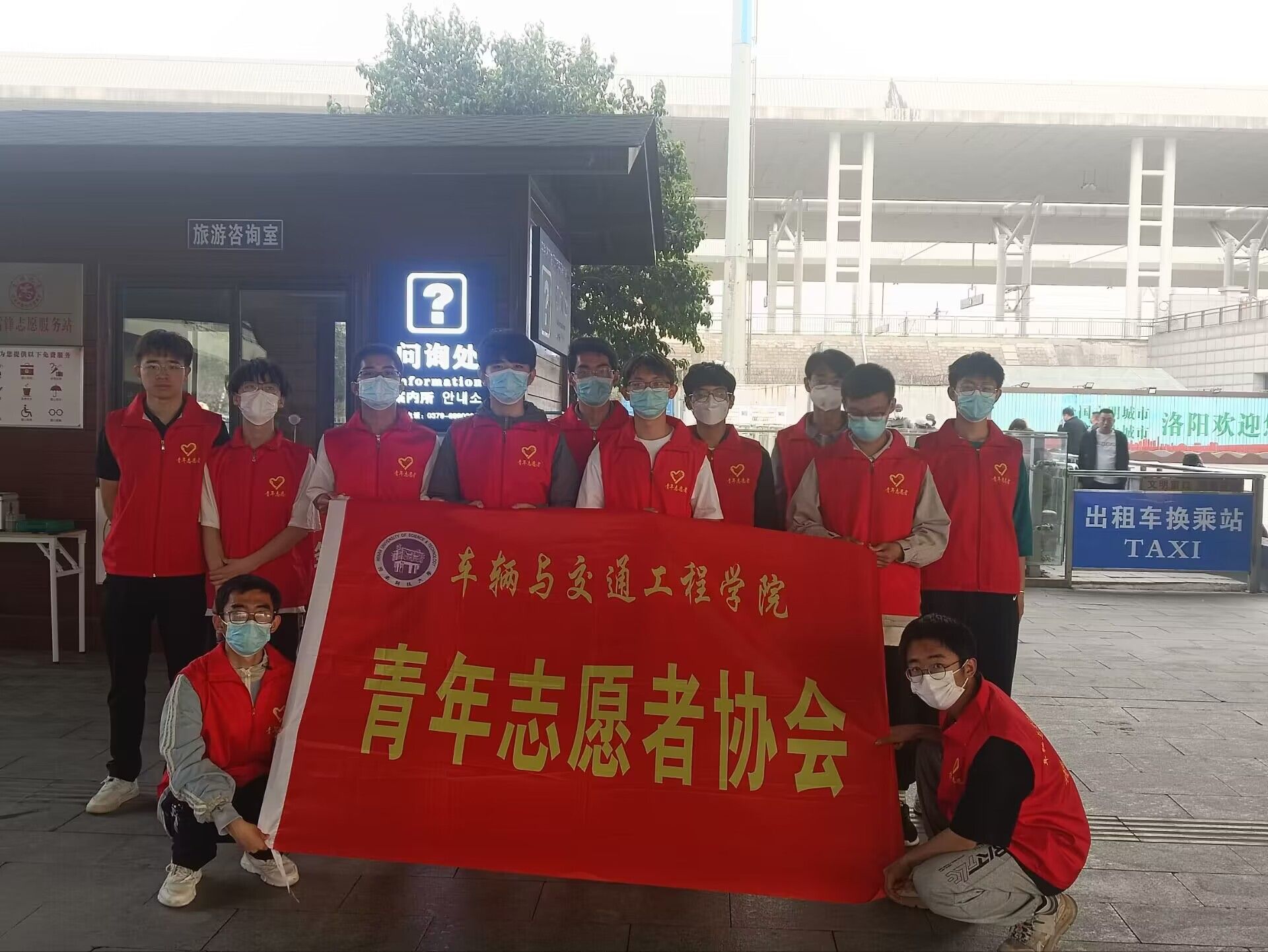 4月12日下午,73882必赢网页版组织青年志愿者协会在洛阳龙门高铁站举办“高铁载客享洛阳美景,龙门迎宾赏牡丹盛宴”志愿服务活动。学院近20名青年志愿者参加活动。