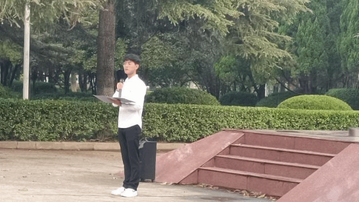 青年志愿者协会会长庄智成发言。他向2023级新生分享了四点建议:一是尽快适应新的大学生活,树立远大的奋斗目标;二是要团结友爱,互帮互助;三是要尊师肯学,持之以恒;四是要严于律己,树立规范意识。