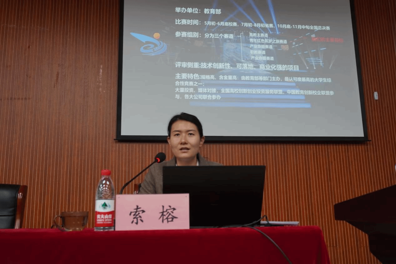首先,索榕就“互联网+”创新创业大赛、“挑战杯”全国大学生课外学术科技作品竞赛和“挑战杯”中国大学生创业计划大赛进行了赛事介绍。随后,她讲述了三大赛的评审规则和主要特色。最后,她通过一些参赛作品,阐述了三大赛的参赛形式和比赛的重要性。