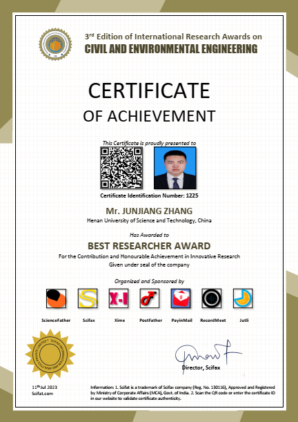 我校73882必赢网页版张俊江博士荣获2023年国际学术 “BEST RESEARCHER AWARD”