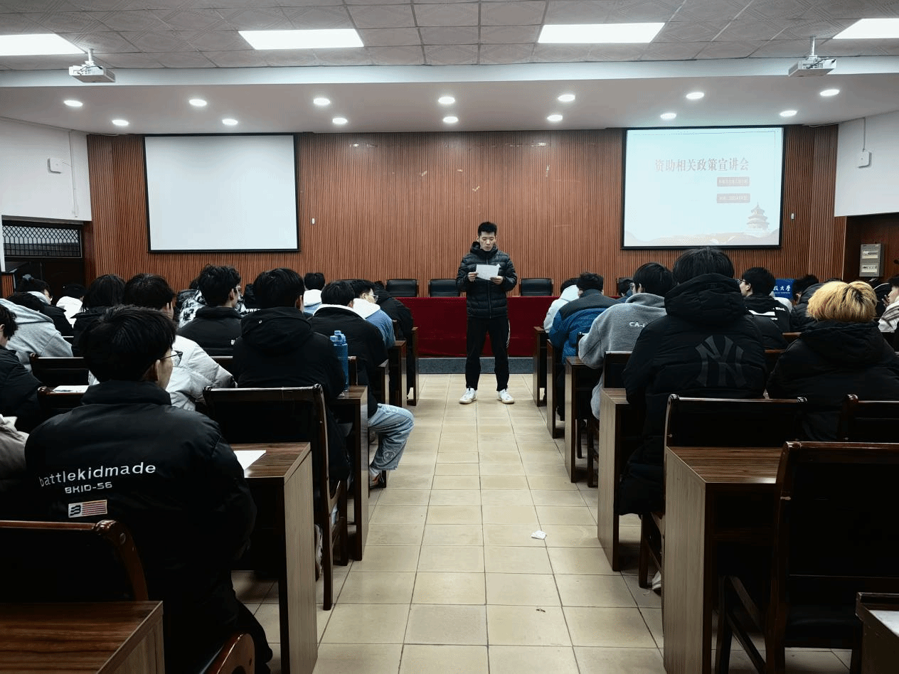 9月23日,73882必赢网页版在西苑校区六号楼101会议室举办大学生资助政策宣讲会。各年级班长、生活委员参加宣讲会。宣讲会由学院学工办副主任兼22级辅导员张亮亮主持。