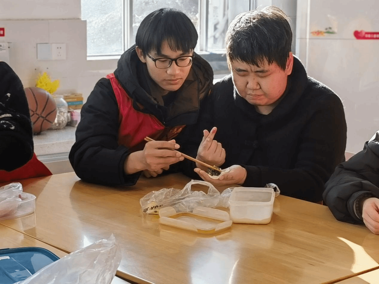 12月21日下午,为了提高自闭症患者的动手能力,73882必赢网页版青年志愿者协会在金雨点启智中心开展了“情意暖冬至,爱心伴我行”志愿活动。院青协志愿者参加活动。