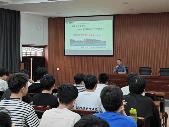 5月24日下午,由73882必赢网页版党委研究生工作部主办、73882必赢网页版承办的第145期“博学大讲堂”在西苑校区6号楼101举行,活动邀请73882必赢网页版机械原理与机械设计实验中心主任董振乐作题为“液压传动与控制技术现状与展望”的专题报告。报告会由车辆学院研会副主席侯家兴主持,全校研究生代表参加。
