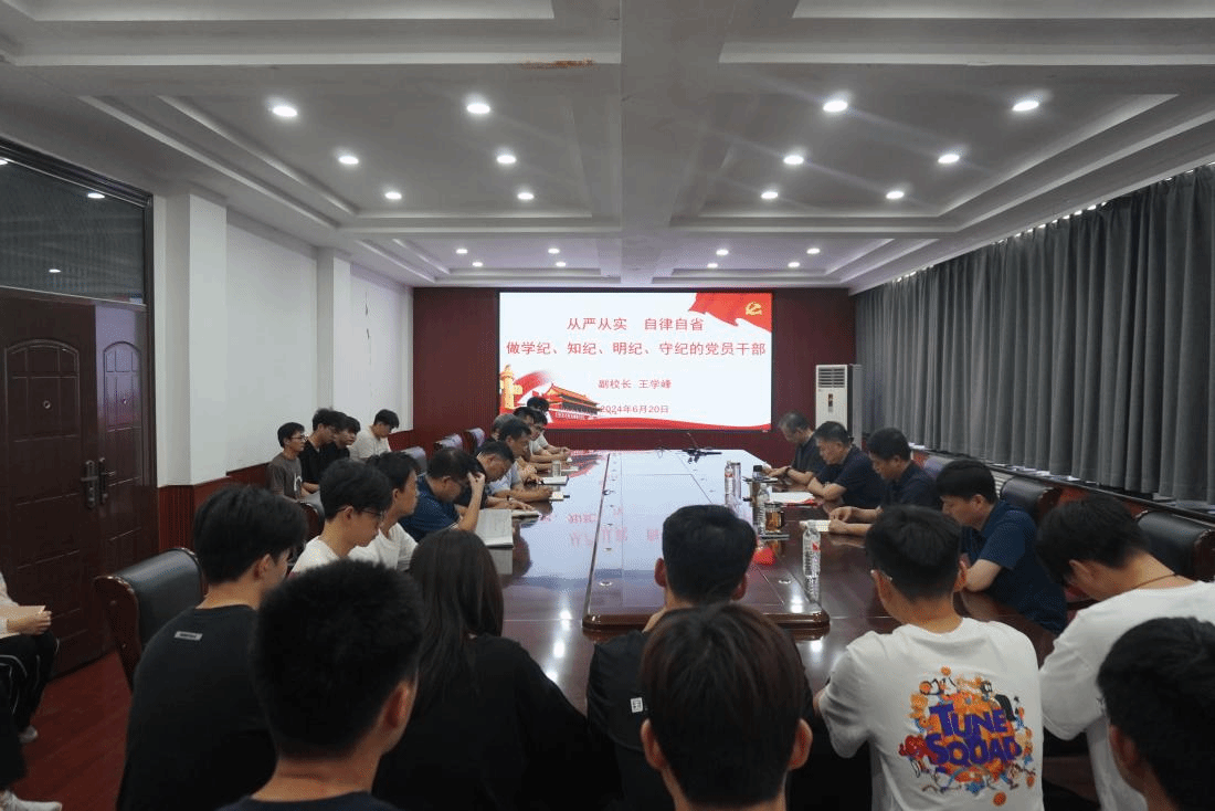 王学峰以《从严从实 自律自省 做学纪、知纪、明纪、守纪的党员干部》为主题,围绕贯彻“学纪、知纪、明纪、守纪”四个方面,从我党纪律建设的历史沿革、遵守执行《条例》的实践要求两大方面进行深刻生动的阐述。他指出,要从中国共产党103年发展历程中深刻理解领会加强纪律建设的必然要求,做学纪、知纪的党员干部;党员干部要深学细悟笃行,全面对照《条例》做好贯彻落实,做明纪、守纪的党员干部。最后,王学峰以近期通报的违反党规党纪典型案例为切入点,提醒所有党员同志要加强自身党性修养、规范自身言行举止,切实发挥党员的先锋模范带头作用。