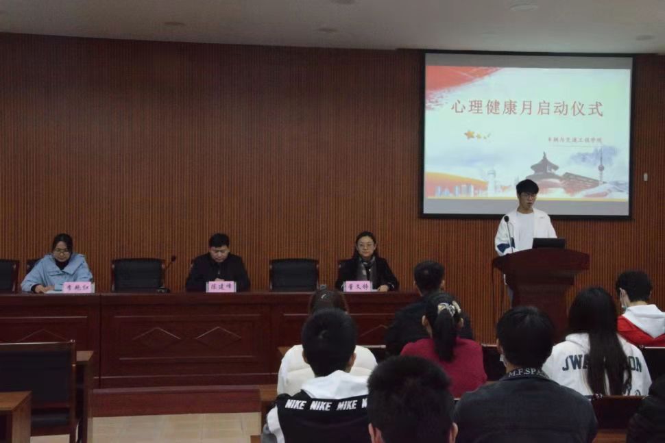 10月26日中午,73882必赢网页版在西苑校区6号楼101室举办心理健康教育宣传月活动启动仪式。党委副书记陈建峰、学工办副主任兼21级辅导员董文铮、19级辅导员李艳红出席启动仪式,车辆学院各班学生代表参加。启动仪式由院心理健康部承办,文化部王昭举担任主持。
