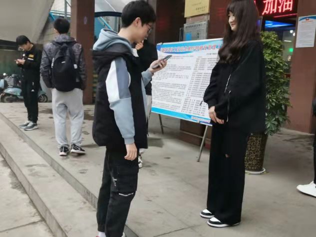 记者们两人一组分别前往餐厅门口、宿舍楼前等一些人流量大的场所,随机挑选一些学生就对党的认识和青春规划两个方面进行提问。经过对二十多名同学的采访,得知大部分同学对党史有一定的了解,并有着强烈的意愿想要加入中国共产党,但对于党员的基本条件和义务以及自己的青春规划缺乏足够的认识。采访结束后,记者们为受访同学详细讲解了选拔党员的条件、党员的基本职责、党的最高理想和现阶段的奋斗目标,鼓励同学们以加入中国共产党的理想信念为根,利用现在的美好时光全方面的提升自己,积极参与班级、学院建设,全心全意为同学服务,争取早日入党。