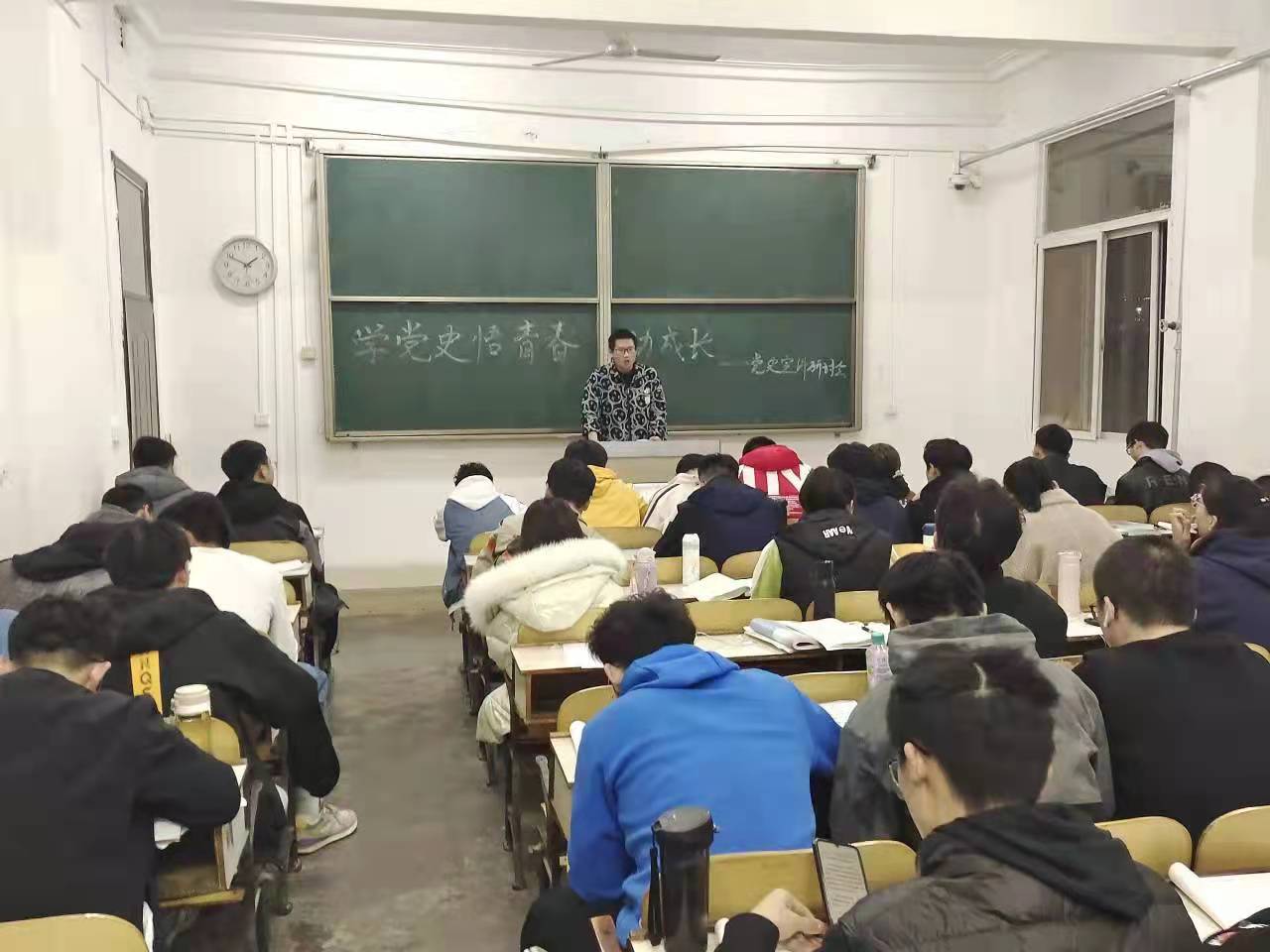 为引导学生学习党史,传承革命精神,养成积极健康的心态,73882必赢网页版于11月5日组织2021级学生在各班自习室积极开展“读党史、悟青春、助成长”主题班会。会议由各班班长主持。