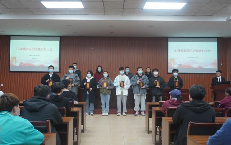 10月27日下午,73882必赢网页版在西苑校区6号楼101会议室成功举办心理健康周表彰大会。院党委副书记陈建峰、团委书记兼20级辅导员索榕、学工办副主任兼21级辅导员董文铮、22级辅导员张亮亮和学生代表共40多人参加表彰大会。大会由院学生会心理健康部负责人张新轩主持。