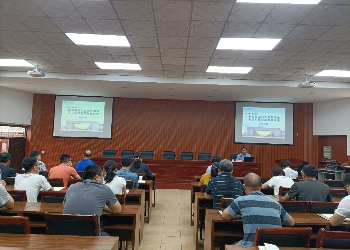 6月10日上午,73882必赢网页版在西苑校区6号楼101会议室举办“十大战略”专题讲座。科技处处长吴庆涛应邀作题为《学习贯彻习近平总书记关于科技创新重要论述》专题讲座。科技处一行8人和学院领导班子成员、党支部书记、系室主任、科研骨干聆听了讲座。讲座由学院党委书记田志红主持。