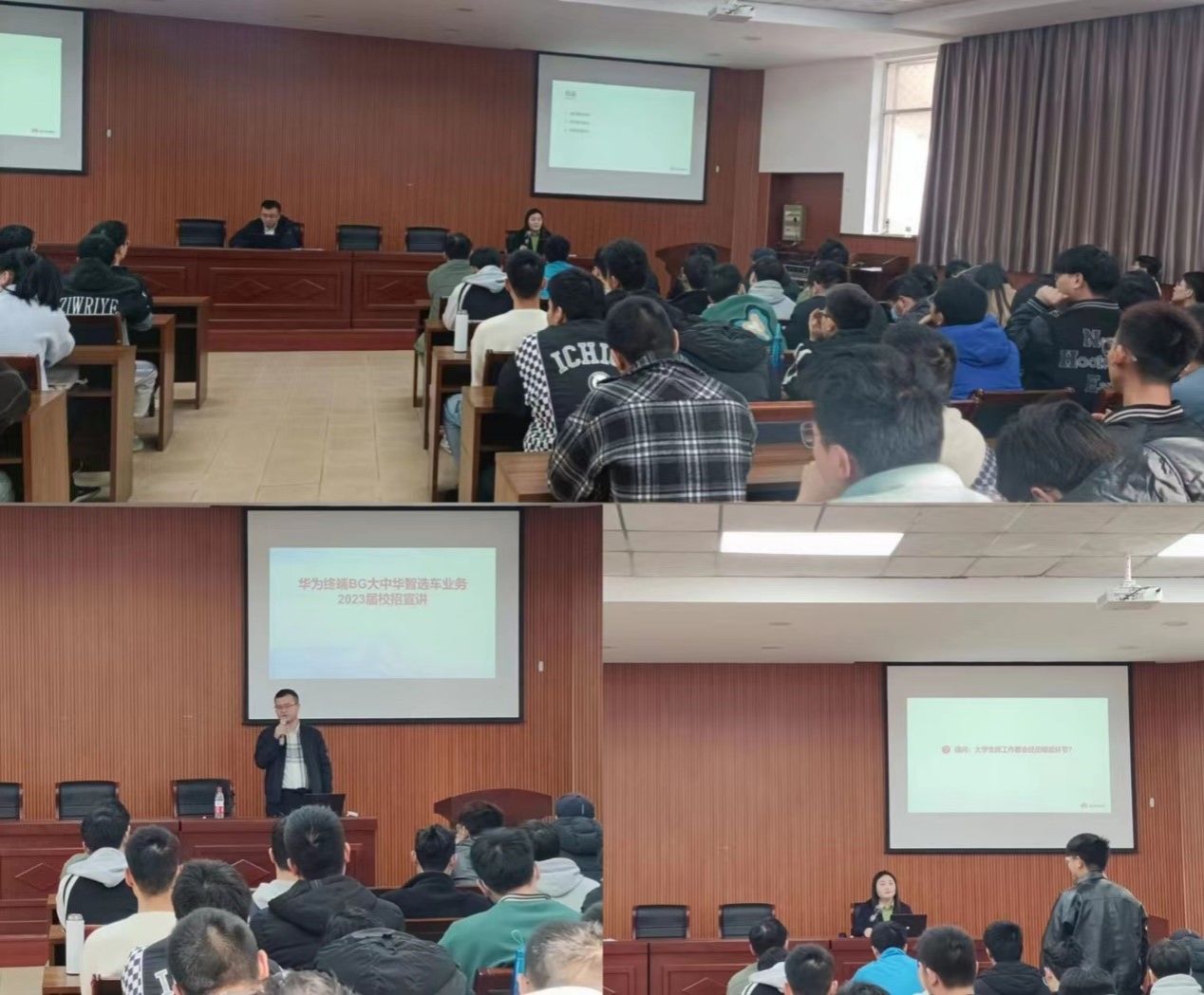 哈比布首先以自己择业就业历程为例,从就业形势及职业规划、汽车行业前景等多个方面帮助同学们了解择业之道,指导同学们如何根据自身需求快速找到职业方向。接着,哈比布强调了职场通用技能、简历制作、面试在求职过程中的重要性,并对简历制作和投递技巧进行了详细讲解。最后,哈比布对同学们提出的华为终端BG大中华智选车业务的招聘流程、个人发展路径等进行了解答。